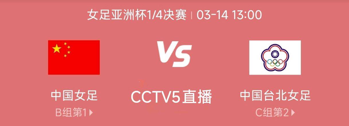 根据1/4决赛的赛程安排,中国女足与中国台北女足之间的比赛将在北京时间3月14日下午13点进行,央视CCTV5也将届时同步直播本场焦点对决。只要中国女足能够战胜中国台北队,将不用进行任何附加赛,稳获直通加拿大女足世界杯的参赛资格。