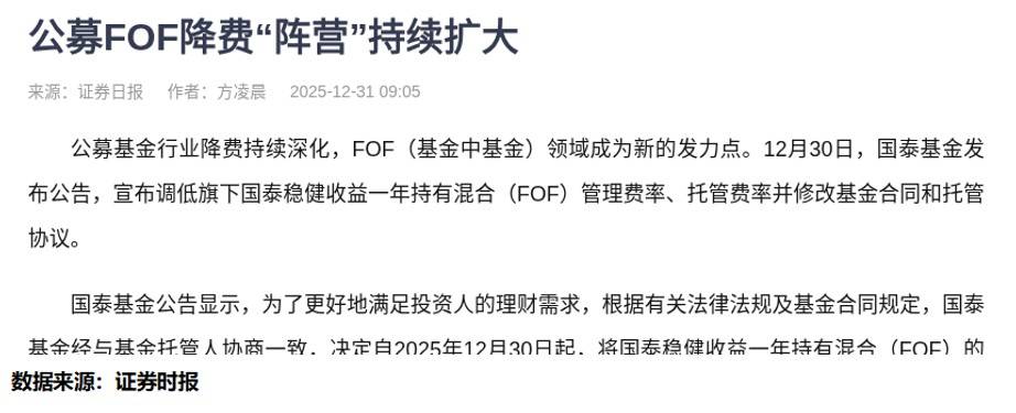 2026-01-03雨燕直播,NBA直播,世界杯直播,足球直播,台球直播,体育直播,世界杯,欧洲杯,苏超直播,村BA直播,苏超联赛,村超,村超直播最近刷到个事儿,公募FOF开始集体降费了——国泰基金把旗下一只FOF的管理费从0.9%直接砍到0.3%,华夏、中银这些公司也跟着降,还有南方基金明年1月也要下调费率。刚开始我还纳闷,好好的怎么突然降费?后来看专家分析才明白:监管要帮我们降低持基成本,养老FOF适合长期投资,低费率更划算,再加上市场竞争越来越卷,降费成了基金公司吸引客户的办法。