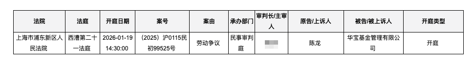 因劳动争议将华宝基金告上法庭。而华宝基金曾有一位名为“陈龙”的基金经理,已于2024年年底离职。2018年,陈龙加入华宝基金担任高级分析师,2021年9月至2024年4月、2021年12月至2024年11月,其分别担任华宝绿色主题和华宝竞争优势两只偏股混合型基金的基金经理。其中,华宝竞争优势曾由知名基金经理曾豪管理,2021年他已加入博时基金。