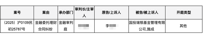 同样被推到被告席上的,还有国投瑞银基金,以及曾掌舵近250亿元规模的知名基金经理施成,因金融委托理财合同纠纷被投资者起诉。