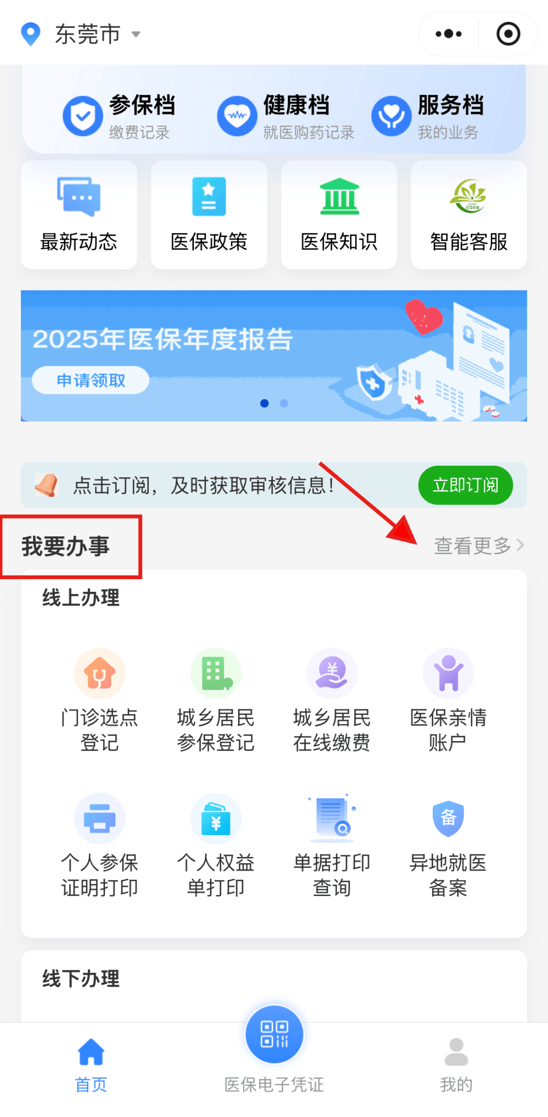 通过【i莞家】-【预约办事】-【在线预约】-选择就近【办事大厅】,预约至本市任一医保经办机构服务窗口线下办理。