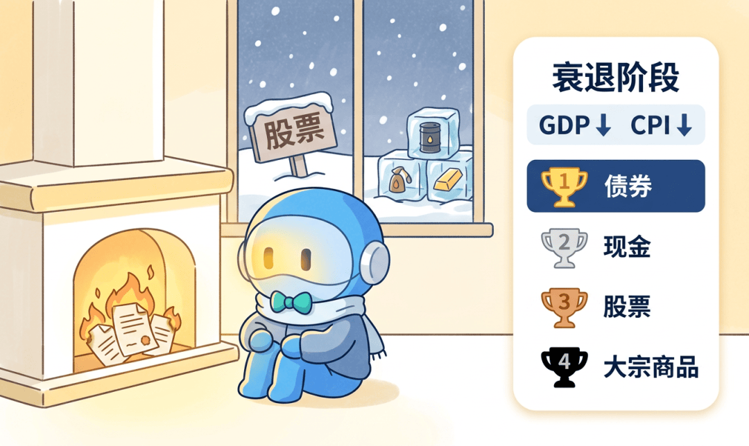 此时,央行通常会大幅降息刺激经济——而利率下降,债券价格就会上涨。这时候,债券的黄金时代到了。