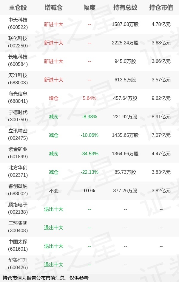2026-04-22雨燕直播,NBA直播,世界杯直播,足球直播,台球直播,体育直播,世界杯,欧洲杯,苏超直播,村BA直播,苏超联赛,村超,村超直播证券之星消息,4月22日兴证全球基金旗下杨世进 谢长雁管理的兴全趋势投资混合型基金公布一季报,近1年净值增长率54.84%。与上一季度相比,该基金前十大重仓股新增中天科技,联化科技,长电科技,天准科技;并对海光信息增仓24.42万股,为该基金第一大重仓股;顺络电子,三环集团,中国太保,华鲁恒升等退出前十大重仓股;详细数据如下: