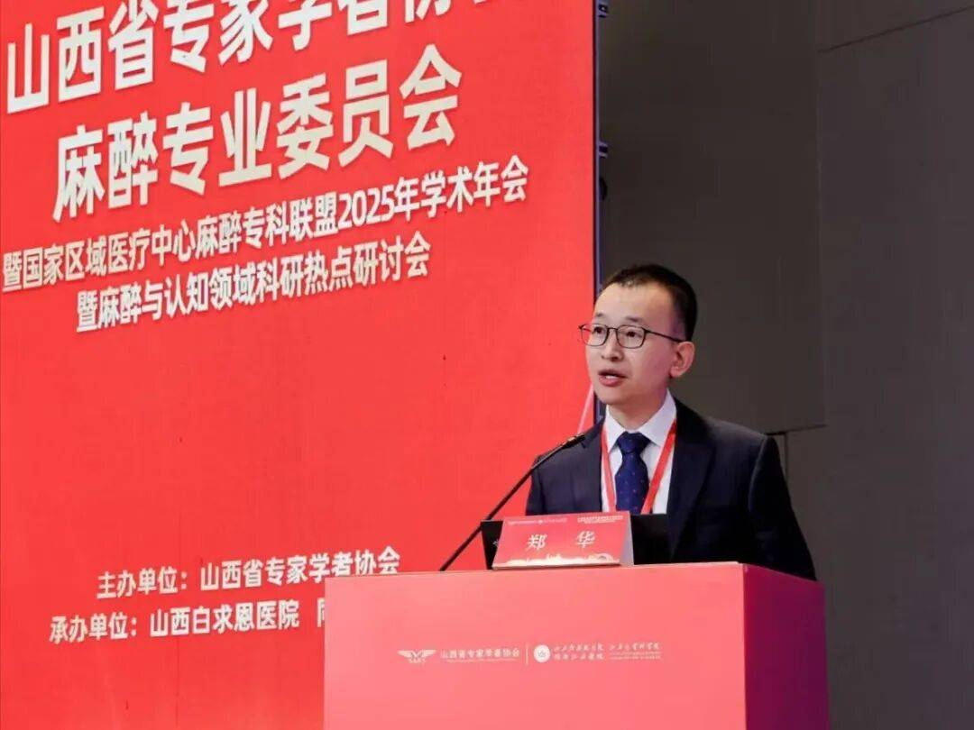 郑华教授首先代表山西省专家学者协会麻醉学专业委员会和大会组委会,向与会的领导和专家学者们表示热烈欢迎,并向所有支持本次年会及山西麻醉事业发展的单位与个人致以诚挚感谢!郑华教授指出,本专业委员会自去年成立以来,已举办多场高质量学术活动,涵盖临床科研、神经阻滞、舒适化医疗等前沿领域,为我省麻醉学科发展及人才培养搭建了重要平台。本届年会以“麻醉与认知”为核心议题,旨在激发中青年医师与科研人员的创新活力,推动多学科交叉融合。经过精心筹备,会议内容全面优化,特邀近百位国内外知名专家,围绕老年麻醉、急危重症、围术期监护等热点开展交流,力求为大家呈现一场精彩纷呈的学术盛会。期待本届年会能够切实服务临床与科研需要,助推山西麻醉事业高质量发展,更好地满足三晋百姓的健康需求。